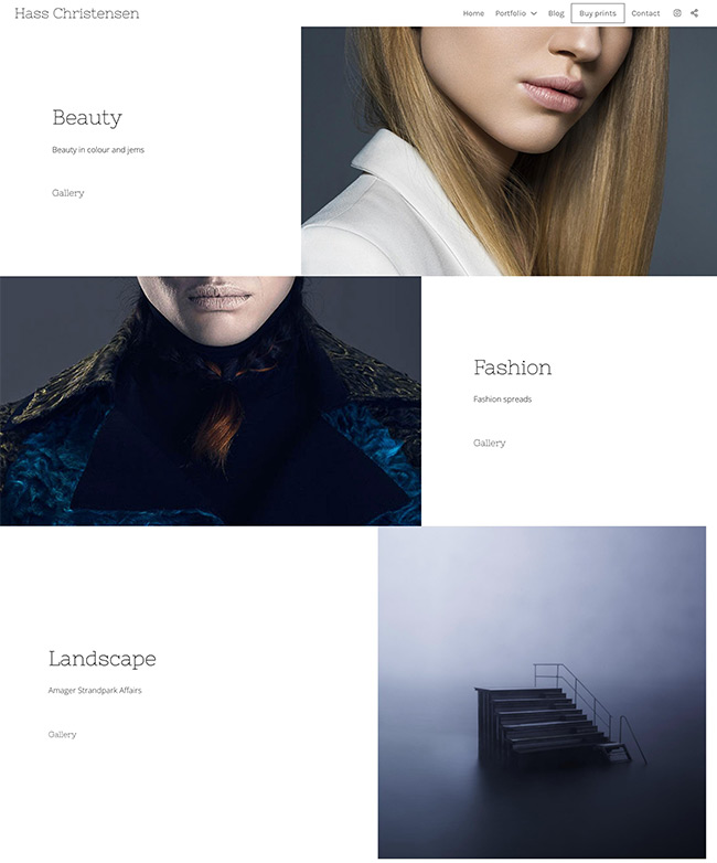 Çek fotoğrafçı Michal Danisz web sitesi, çarpıcı fotoğraflarını minimalist web sitesinin açılış sayfasının arka planı olarak kullanıyor. Ayrıca web sitesini yapılandırmak ve sınıflandırmak için çok basit bir ızgara düzeni kullanıyor ve bu da gezinmeyi çok kolaylaştırıyor. Mivahls gibi minimalist web sitelerinde gezinmek kolay olmakla kalmaz, aynı zamanda mobil cihazlar için de iyi bir şekilde optimize edilir.