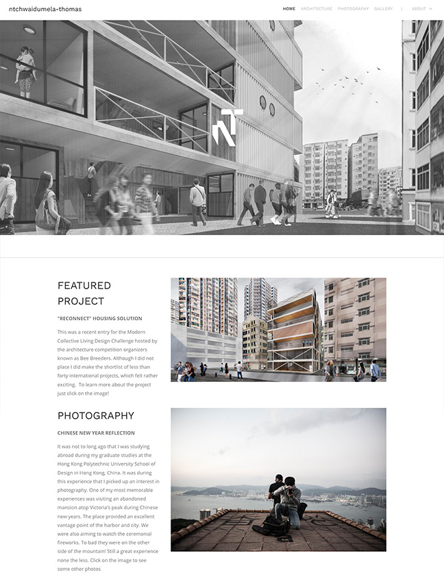 Ntchwaidumela Thomas'ın web sitesi, mimari tasarımlarının ve çalışmalarının web sitesinde gösterinin yıldızı olmasını sağlamak için sessiz gri tonları ve abartısız bir yazı tipini mükemmel bir şekilde kullanıyor. Minimalist web siteleri, tasarım web siteleri için gerçekten iyi çalışır çünkü web sitenizin tasarımını kendi benzersiz tasarım felsefenizi iletmek için kullanabilirsiniz.