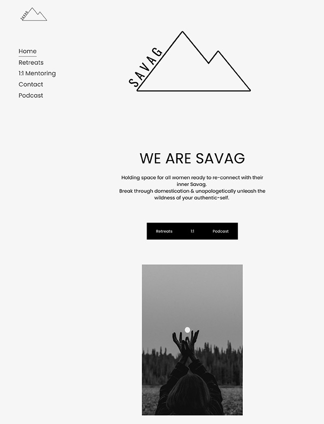 Savag Collective'in sitesi, basit şekiller ve renk şemaları kullanmanın minimalist web sitelerine nasıl bir netlik duygusu kazandırabileceğinin bir örneğidir. Web sitesinin açılış sayfası basittir ve güçlü siyah çizgiler ve kalın yazı tipleri kullanır. Bu, markalarının arkasındaki vizyonu daha iyi iletmelerine yardımcı olur.