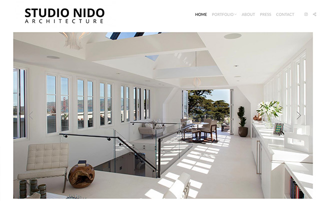 Studio Nido, San Francisco Körfez Bölgesi'nde üçüncü nesil mimar Babac Doane tarafından işletilen bir mimarlık firmasıdır. Giriş sayfasındaki ana görüntü, Babac'ın mimarisinin ardındaki felsefe olan sıcaklık ve yuva hissini veren bir evin içindeki şömineyi tasvir ediyor. Size ilham verecek minimalist web sitesi örnekleri arıyorsanız, Studio Nido'nun web sitesi kontrol etmeniz gereken bir şey.