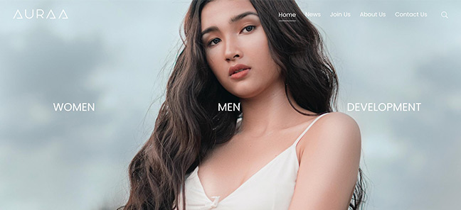Auraa, Hintli bir modelleme ajansıdır ve web siteleri, işyerinde minimalist web sitesi tasarımının görsel olarak çarpıcı bir örneğidir. Web sitesi çok basit ama sezgisel bir gezinme düzeni kullanır ve modellerin fotoğraflarının ve portföylerinin her zaman odak noktası olmasını sağlamak için web sitelerini metin üzerinde açık tutar.