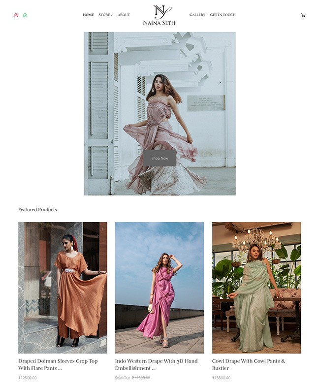Naina Seth'in web sitesi, her giysinin ve ürünün hak ettiği ilgiyi görmesini sağlamak için minimalist bir yaklaşım kullanır. Dağınık e-ticaret web sitesi sayfaları, çoğu zaman müşterilerin dikkatini dağıtabilir ve her bir öğeye hak ettiği ilgiyi vermelerini engelleyebilir. Küçük e-ticaret girişimleri için minimalist web siteleri kullanmak, müşterilerin dikkatini ve etkileşimini en üst düzeye çıkarmanıza yardımcı olabilir.
