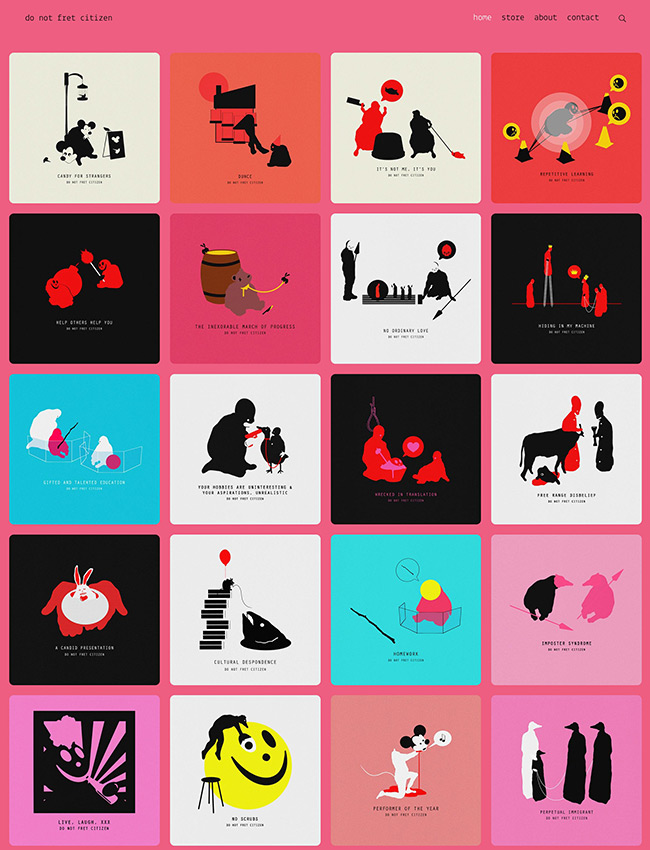 Minimalist web siteleri oluştururken düz beyazlara ve siyahlara bağlı kalmak zorunda değilsiniz ve hiçbir şey bunu Hintli sanatçı Abhiram Reddy'nin web sitesinden daha iyi sergileyemez. Parlak pembe arka plan, küçük harfler, benzersiz yazı tipi seçimi ve Abhiram'ın dramatik, çağdaş sanatı, görsel olarak çarpıcı ve benzersiz, minimal bir web sitesi oluşturmak için bir araya geliyor.
