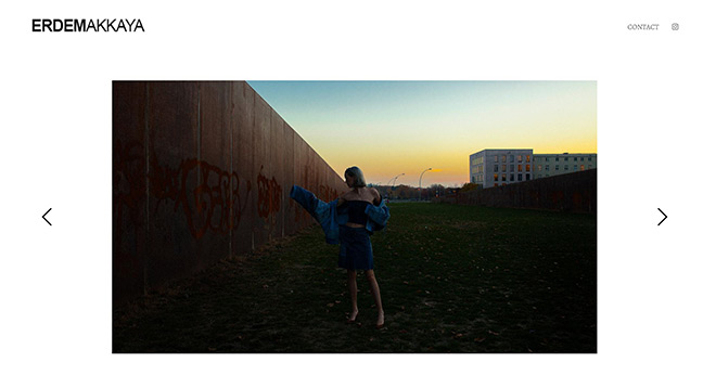Türk fotoğrafçı Erdem Akkaya, minimalist fotoğrafçılık web sitesi için tüm konuşmayı fotoğrafçılığına bıraktı. Açılış sayfası aynı zamanda fotoğraf portföyünün galerisidir. Bu, web sitesinin açılış sayfasını, minimalizmden ödün vermeden tüm web sitesi için çok kapsamlı bir özet yapar.