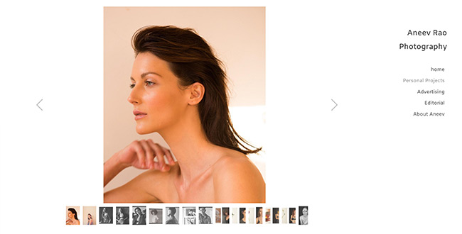 Aneev Rao'nun güzel minimalist web sitesi bize eski zamanlardan kalma bir fotoğraf albümünden bir sayfayı hatırlatıyor. Sade, koyu mavi bir arka plan üzerinde bir profil portresi, yandaki portföyüne bağlantılar ile açılış sayfasının merkezinde yer alır. Bu, hem bir etki yaratma hem de bizi çalışmalarına tanıtma konusunda harika bir iş çıkarıyor.