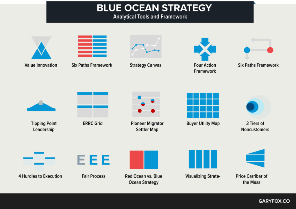 Mavi okyanus düşüncesini başarılı bir şekilde uygulamak için doğru araç setine ve sürece sahip olmanız gerekir. Çerçeve ve süreçle uyumlu araçlar, mavi okyanus stratejilerini sistematik olarak tanımlamanın güçlü bir yoludur. Ekipler araçlara aşina olduğunda, zihniyetteki değişim daha kolay hale gelir ve süreç, fırsatları yaratıcı bir şekilde çerçeveleme yoluna gömülür.