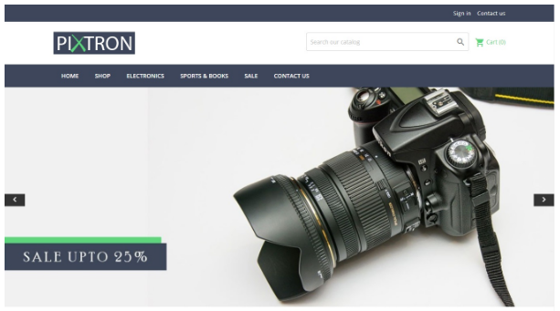 Programlama becerisi olmayan yeni başlayan biriyseniz ve Magento 2 tema geliştirme şirketini kiralamak bile istemiyorsanız . O zaman Pixtron'u denemelisiniz. Bu, temiz ve modern görünüme sahip ücretsiz bir Magento 2 temasıdır. Burada çeşitli unsurlar ve seçeneklerle bir e-ticaret sitesi oluşturmak oldukça kolaydır.