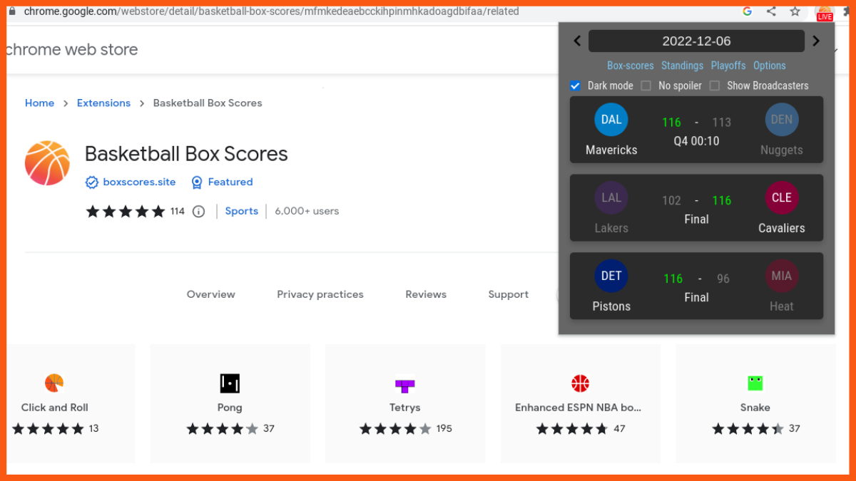 NBA (Ulusal Basketbol Birliği), internet üzerinden yapılan toplam arama sayısı açısından Amerika Birleşik Devletleri'nde oldukça popüler bir spordur. Basketball Box Scores uzantısı, basketbol tutkunlarının farklı web sitelerinde gezinmeden skorları takip etmeleri için tek adresli bir çözümdür.