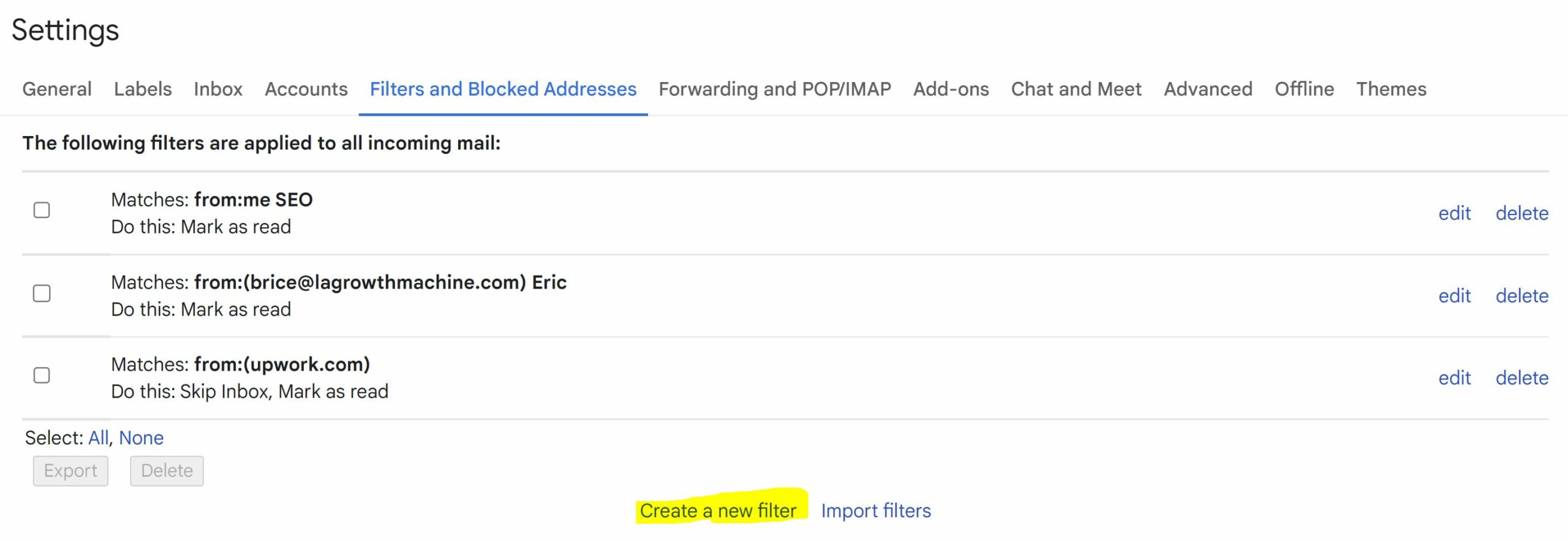 Her gün bir sürü e-posta alıp göndereceğiniz için, B2B araştırması yaparken çok kullanışlıdır! Tıpkı etiketler gibi, filtreler de daha net bir görüş elde etmek için gelen kutunuzu temizlemenin ve düzenlemenin bir yoludur.