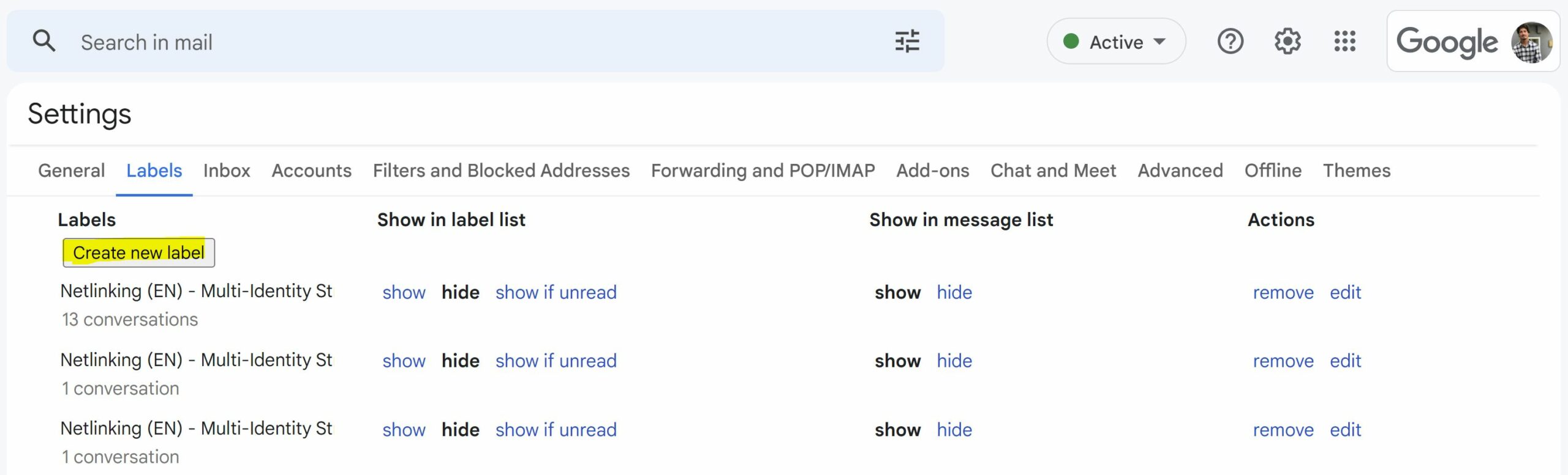 - "Yeni bir etiket oluştur"a tıklayın veya eskileri kaldırın.