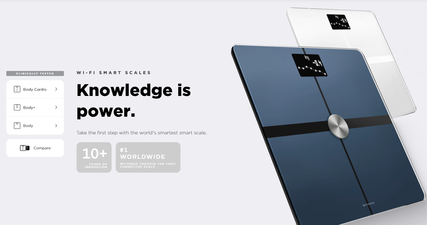 Withings, akıllı saatler, teraziler, BP monitörleri, Uyku analizörleri ve Akıllı termometreleri içeren çok çeşitli giyilebilir sağlık ürünlerine ve sağlık kontrol ürünlerine sahiptir. Bu ürünlerin tümü, harika görünürken mükemmel işlevsellik sağladığından emin olur. Ürünlerinden bazıları şunlardır: