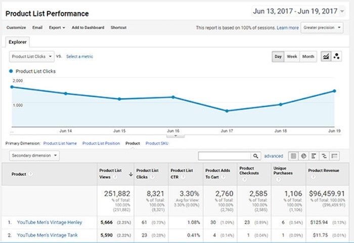 Mağazanızda Gelişmiş E-ticaret izlemeyi etkinleştirerek alacağınız birkaç güçlü rapor: