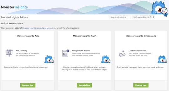 MonsterInsights'ın premium sürümü, bir eklenti gibi yüklediğiniz ve etkinleştirdiğiniz Eklentiler adı verilen ekstra özellikler içerir.