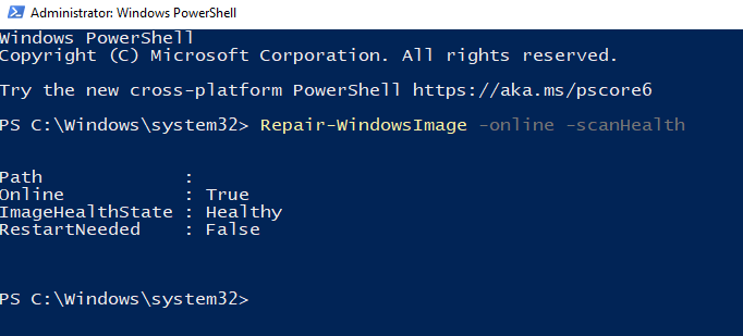 - RestoreHealth için: Repair-WindowsImage -RestoreHealth