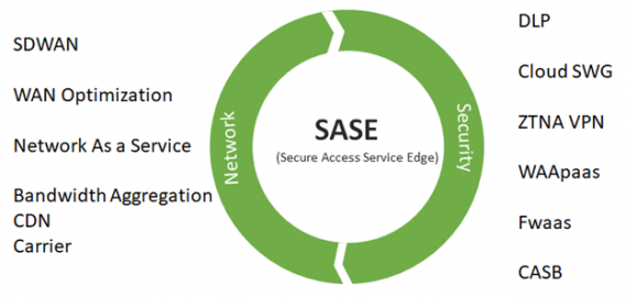 Gartner, SASE'yi SD-WAN ile bulut tarafından sağlanan bir güvenlik hizmetinin birleşimi olarak tanımlar. SD-WAN ve bulut tabanlı güvenlik, güvenli erişim hizmeti kenarı vizyonu sunmak için SASE mimarisinin temel bileşenleridir.