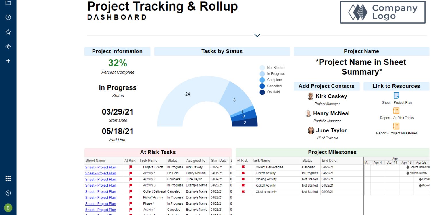 İşletmeler, Smartsheet Dashboard'ları aşağıdakiler gibi birçok şekilde kullanabilir: