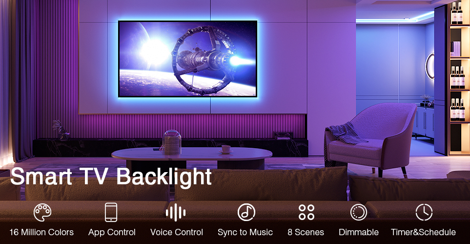 "Önyargılı Aydınlatma" olarak da adlandırılan TV Arka Işıkları, temel olarak TV ekranınızın arkasını aydınlatan ışıklardır. Kurulduğunda, harika estetik ve iyi bir ambiyanstan daha fazlasını sunar.