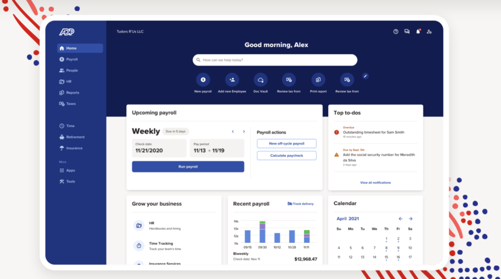 ADP 是一个多功能平台,可为所有行业和规模的组织提供服务。 无论您是拥有少于 10 名员工的小型团队,还是在全球拥有数千名员工的跨国公司,它都可以证明您的薪资和人力资源需求是合理的。