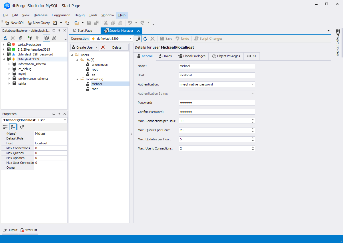 Security Manager 是 dbForge Studio for MySQL 套件的一部分,为它添加了一个用于管理 MySQL 数据库安全性的强大工具。 它具有扩展的功能和实用友好的用户界面,旨在促进日常安全管理任务,例如管理 MySQL 用户帐户和权限。