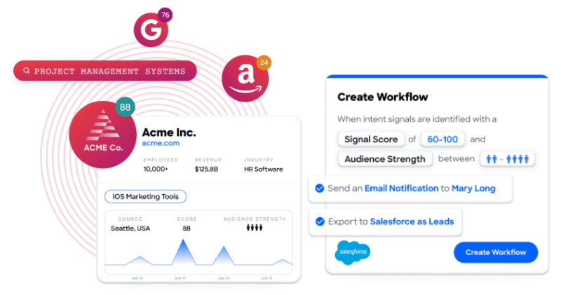处理和解释意图数据就是一个例子。 ZoomInfo 说明了 B2B 营销人员如何访问此功能。 除了作为其业务起源的基本联系信息外,该公司现在还根据客户的行为向营销人员提供购买信号。
