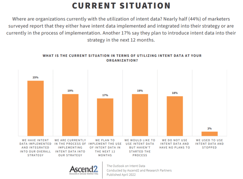 意图数据已经被广泛使用。 在对最近的一项调查做出回应的公司中,有十分之六表示他们已经或计划在明年实施意图测量数据解决方案。