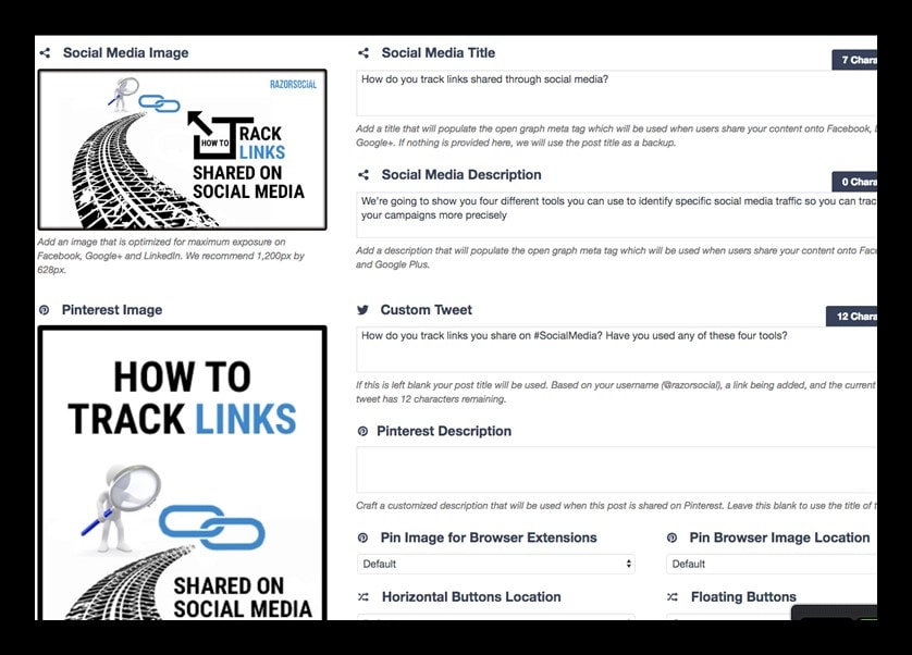 我喜欢这个插件的地方是你可以为不同的社交网络添加自定义图像和文本。 当有人分享您的内容时,插件将分享特定于该社交网络的预定义图像/文本。