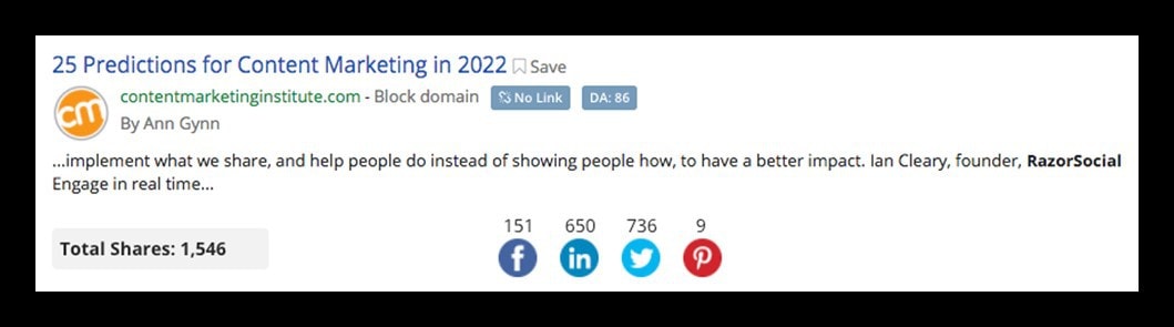 其他类型的战略内容将获得更多来自 Google 的分享、链接和喜爱,包括框架(请参阅我们的 PRISM 框架)、“操作方法”内容、案例研究和影响者内容(例如来自行业专业人士的 123 内容营销工具)。