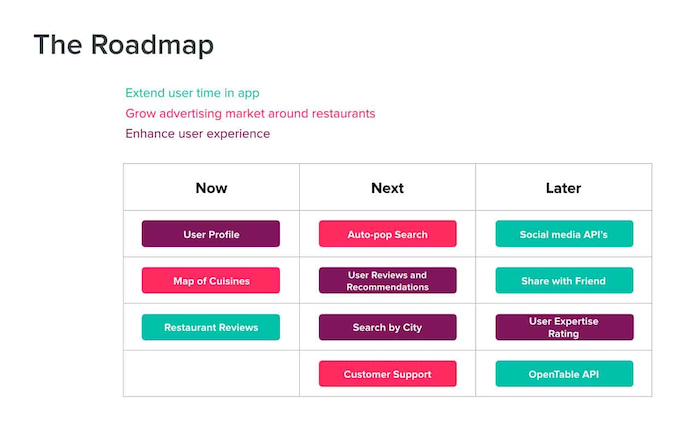 谁在审查此内容,他们期望什么? 在展示您的路线图之前清楚地定义您的受众是有益的。