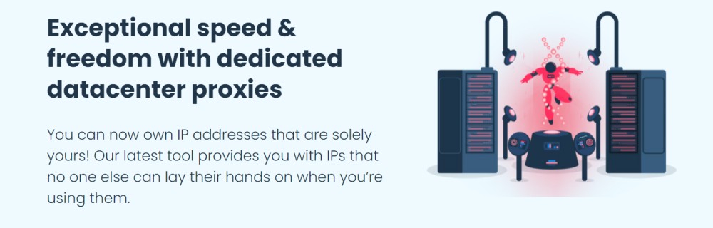 - 私有数据中心代理:也称为专用代理,私有数据中心代理是在给定时期或特定域中使用的 IP 地址。 这些速度非常快,可以帮助企业进行网络抓取、社交媒体管理、搜索引擎优化等。