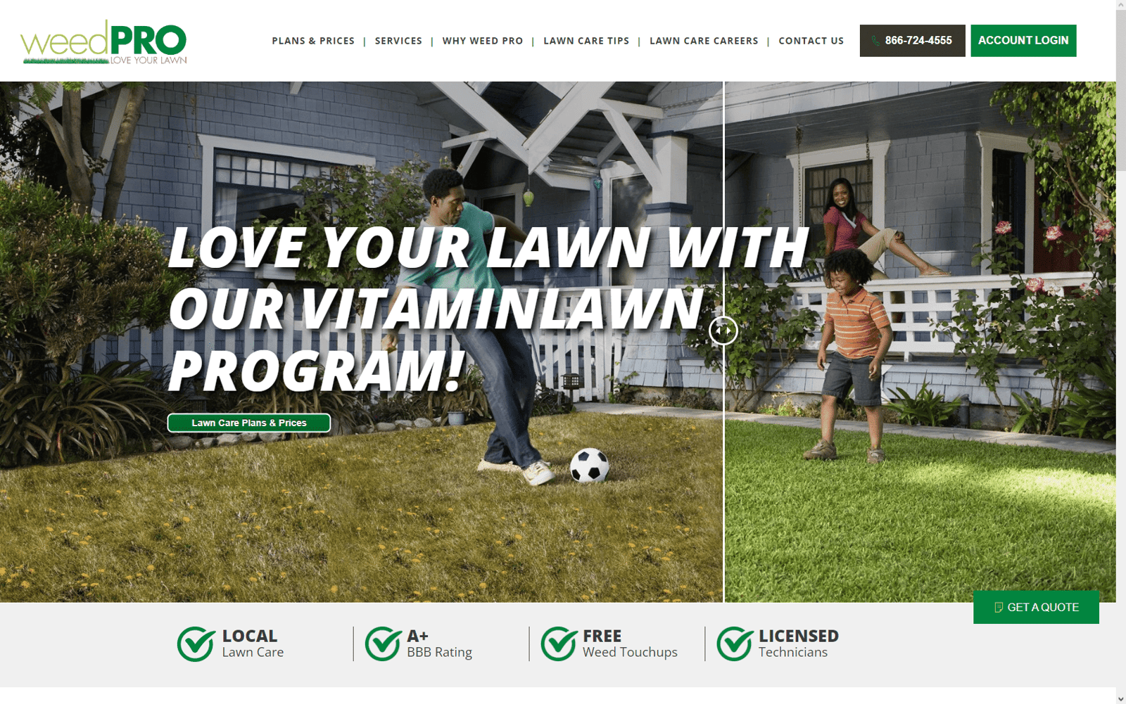 草坪护理公司Weed Pro使用滑块显示处理前后的草坪。 它只是一个过滤器,但它是一个强大的视觉效果,表明如果采取适当的维护措施,您的院子会看起来多么明亮和美丽。