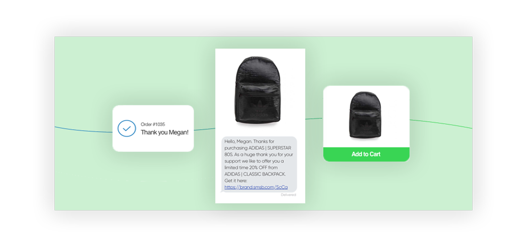文字營銷是此時通過折扣或免費送貨等吸引人的優惠吸引他們的好方法。 為了使您的信息更具吸引力,您還可以添加留在購物車中的產品圖片。 增加一種緊迫感,我們保證——您會看到這些銷售額增長很快。