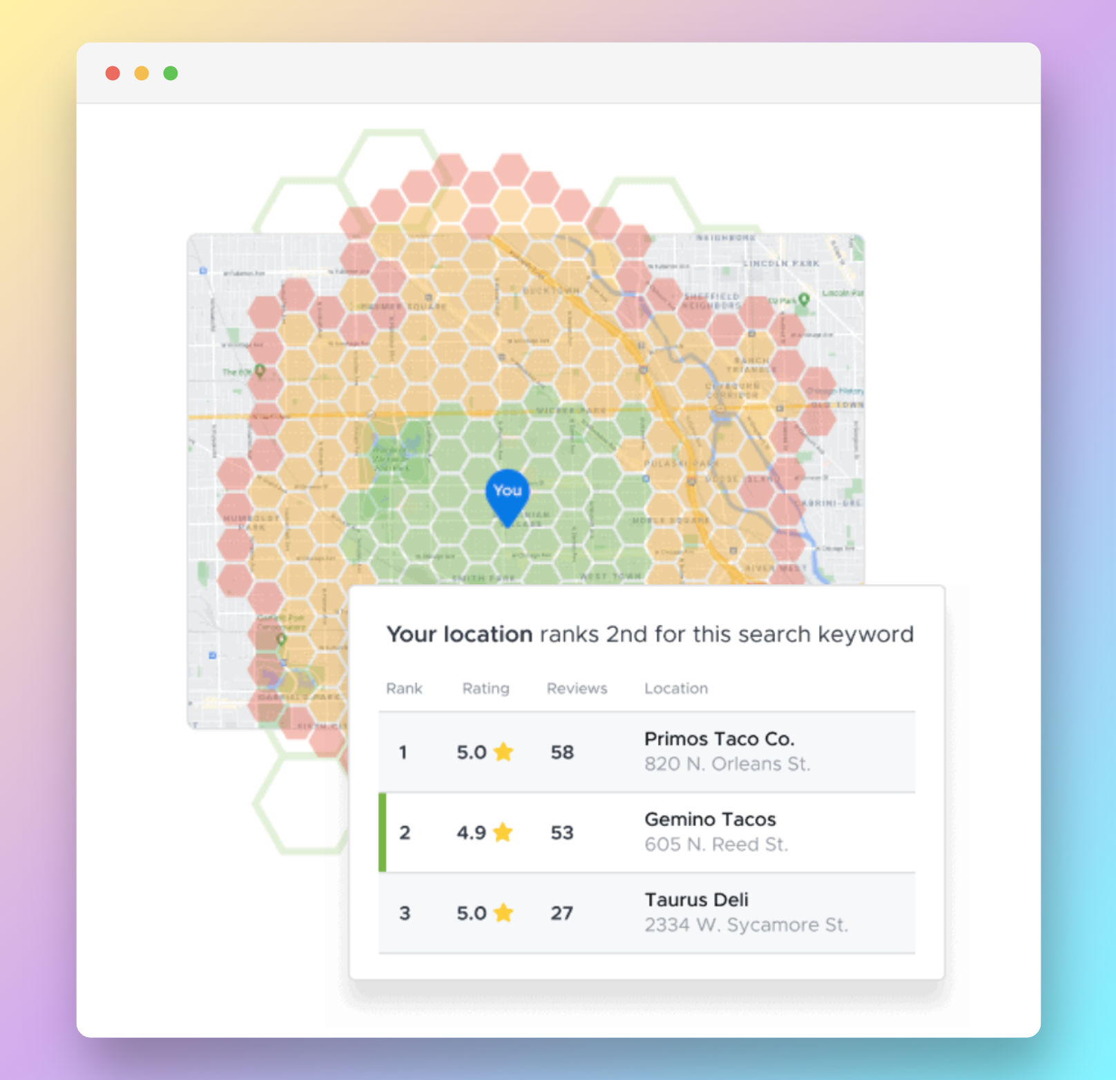 投資本地搜索排名檢查器應該為您的品牌提供上下文相關的競爭對手洞察力,以提高您的本地搜索排名。 通過根據這些見解採取行動,您可以優化您的品牌在“靠近我”的搜索中的可見度,並擴大您的影響範圍,因為它與消費者用來查找您的品牌的搜索詞和關鍵字相關。