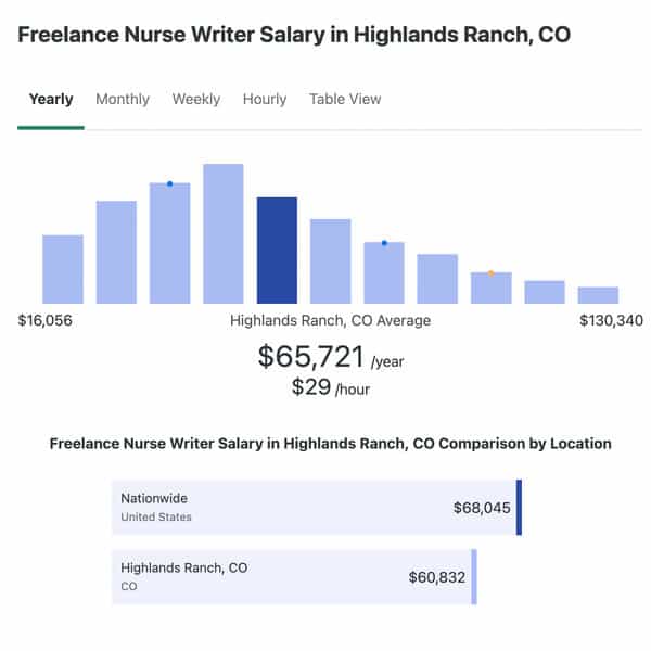據 ZipRecruiter 稱,護士作家的平均工資為 68,045 美元/年。