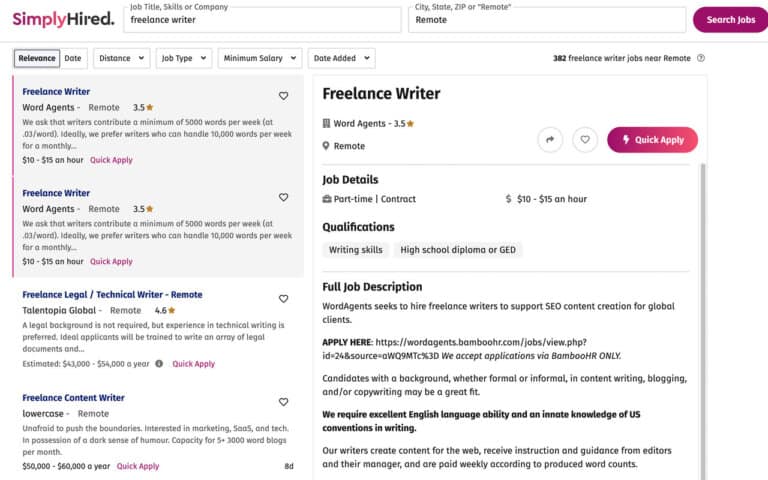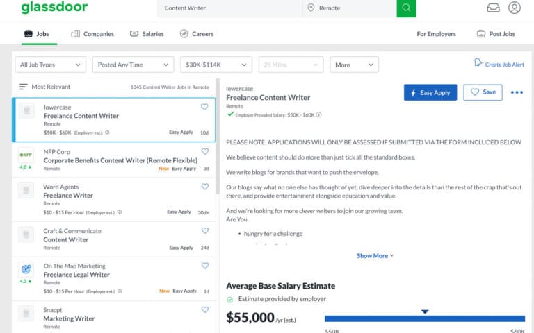求職網站是一個旨在聚合數千甚至數百萬個工作的在線網站。 這些通常是遠程工作、自由寫作工作等自由職業、入門級工作以及您可以查看的本地工作。