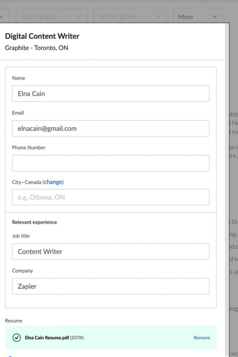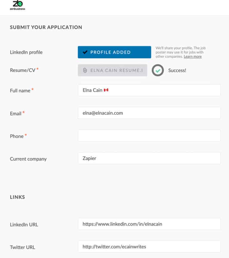 從那裡,您通過填寫招聘廣告指定的信息來申請。
