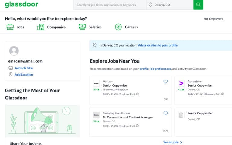 您有時可以使用 Glassdoor 之類的求職網站並刪除該位置以擴大您的求職範圍。