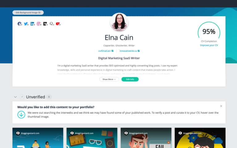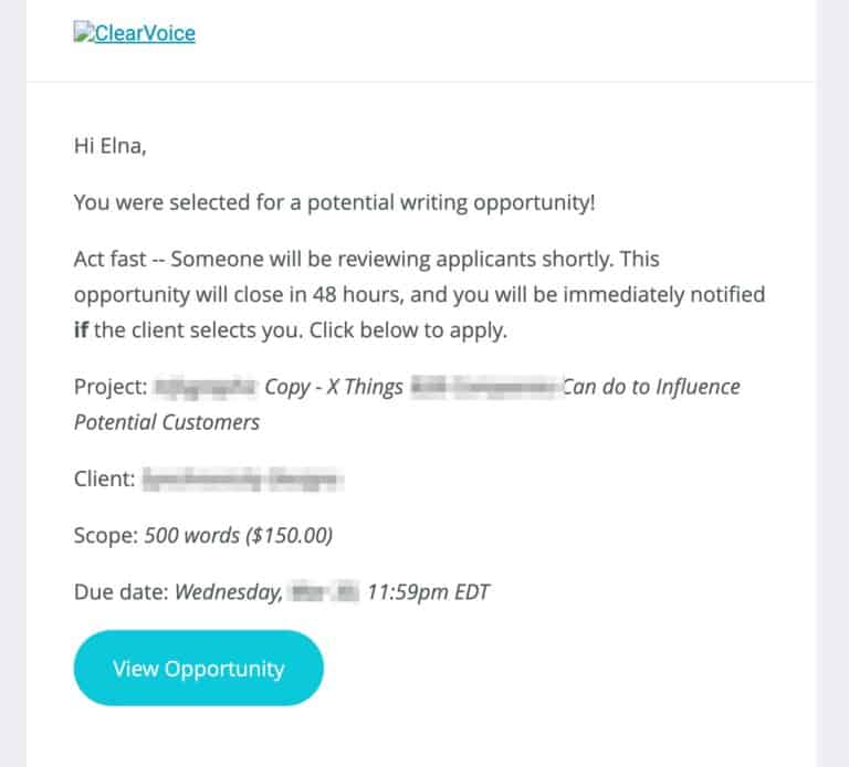 當您訪問他們的自由職業部分時,您可以設置個人資料或簡歷,ClearVoice 將通過電子郵件發送高薪內容寫作工作。