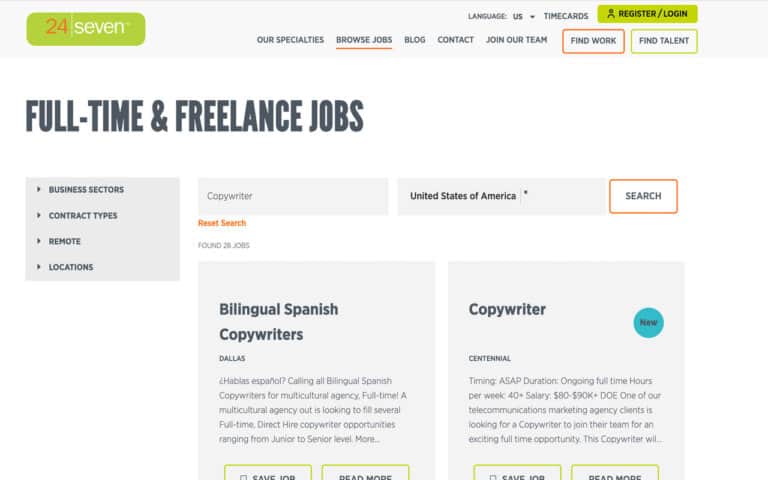 24/Seven 是一個僅限美國的創意工作委員會網站。 有全職、兼職、遠程或合同和自由職業者可用的工作,如果您住在美國,請考慮使用此工作網站進行在線求職。