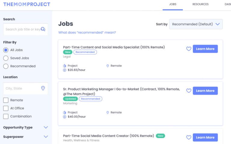 The Mom Project 是一個為您匹配潛在潛在客戶的工作網站。 它面向那些沒有工作並希望過渡到在家工作或從事遠程工作或自由職業的媽媽。