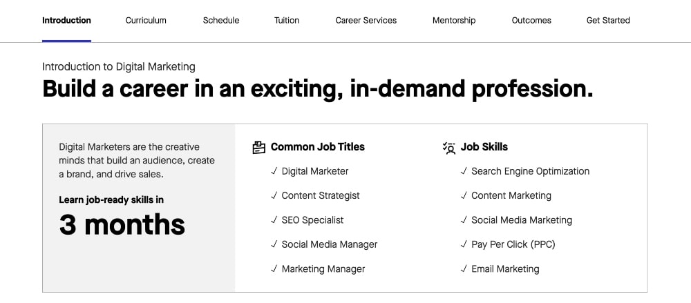 密集的課程結構、全面的材料和價格使該計劃非常適合嚴肅的數字營銷人員。