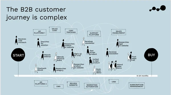 因此,有很多接觸沒有被數字化捕獲,但它仍然是客戶旅程的一部分。 所有這些信號都表明B2B客戶旅程相當複雜並且需要很長的時間。