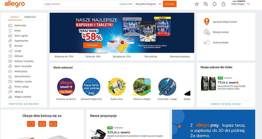 Allegro 是波蘭的主要購物渠道,在全國范圍內運營。 現在運營超過 21 年,Allegro 在此期間積累了 117,000 家商家,正式成為全球訪問量排名第 10 的電子商務網站。 Allegro 目前平均每月有 2000 萬客戶,因此,如果您正在尋找進入波蘭市場的途徑,甚至在波蘭購買,Allegro 就是您的去處。