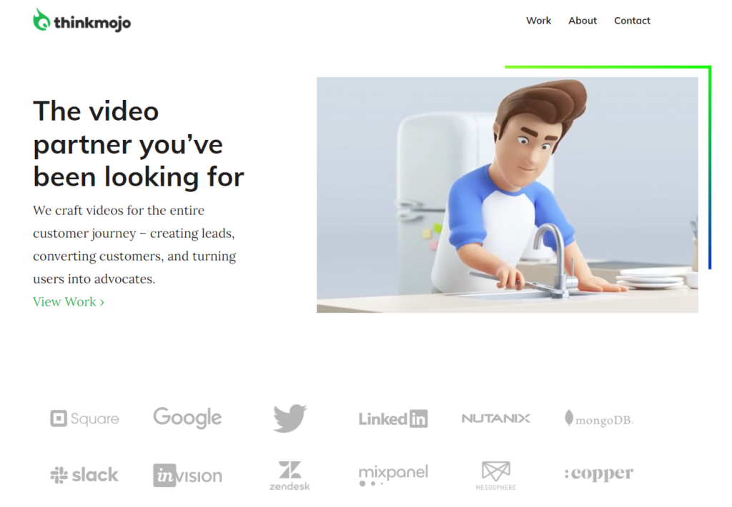 Thinkmojo 是一家位於美國的動畫工作室。 Thinkmojo除了動畫之外,還為商家提供營銷視頻,他們的動畫視頻可能和他們的營銷視頻一樣精彩。 Thinkmojo 的專業動畫師可以將您的想法轉化為動畫。 他們聲稱自己的努力得到了認可。
