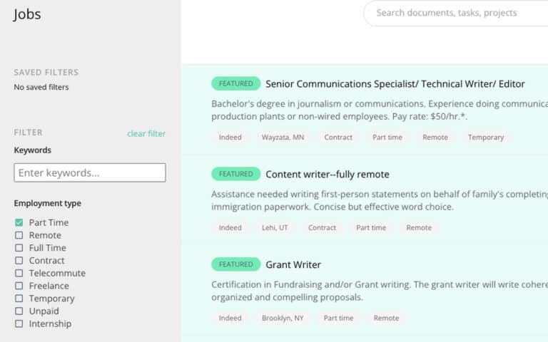 他們甚至還有副業寫作工作。 只需勾選“兼職”即可找到他們。